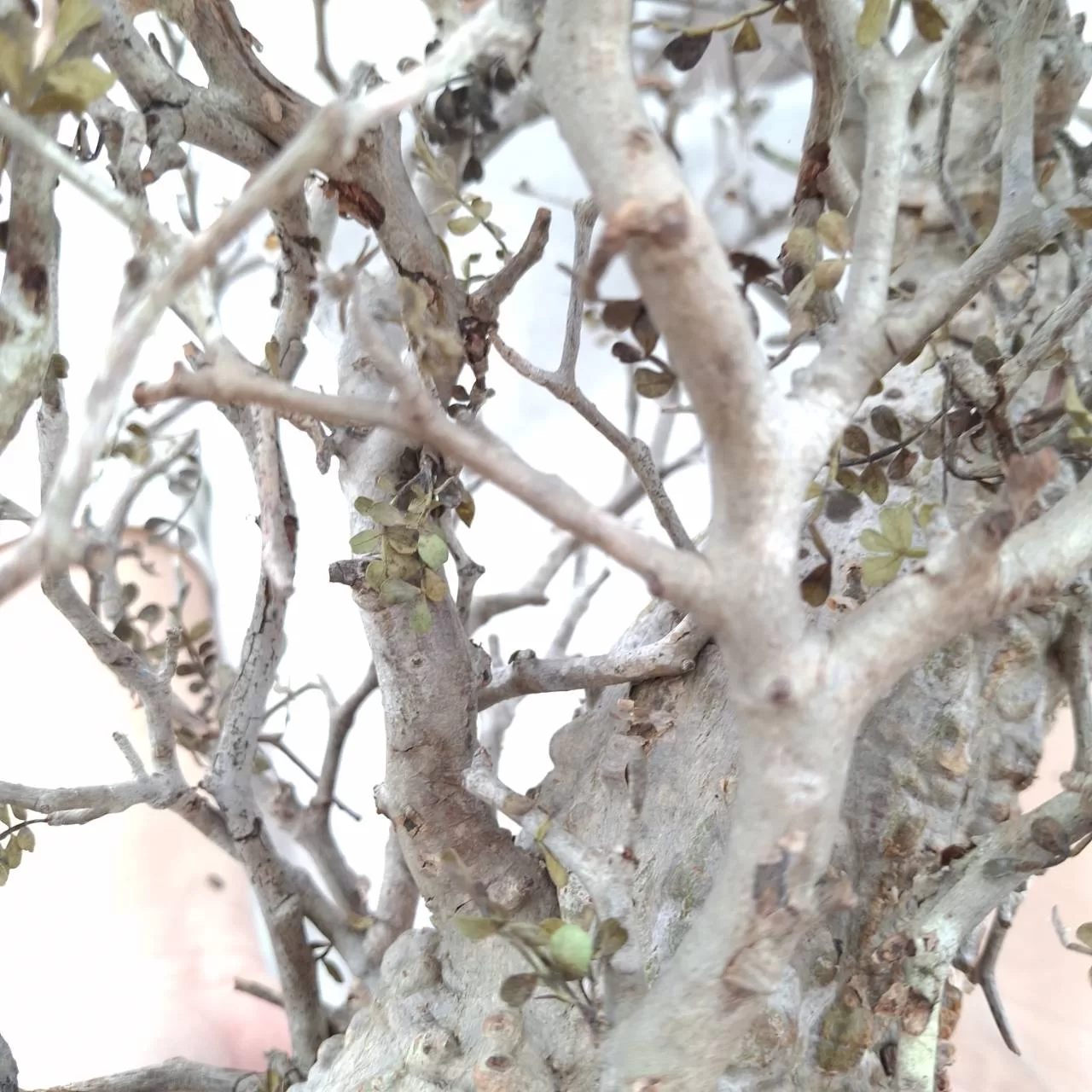 オペルクリカリア・パキプスは、マダガスカル原産の非常に希少な塊根植物で「塊根植物の王様」とも呼ばれています。ウルシ科オペルクリカリア属(Anacardiaceae Operculicarya )に属し、複雑に隆起したコルク状の幹からジグザグに枝を伸ばし、小さな丸い葉を茂らせます。幹の表皮はデコボコしてシルバーの色味を帯びており、独特な風貌と存在感が魅力です。成長は非常に遅く、小さなサイズでも樹齢は50年から150年に達し巨大な株は300年~500年ともいわれていますが、枝は毎年旺盛に伸び、剪定して長く楽しめます。寒さに弱く、冬は室内で育てる必要がありますが、夏は屋外で育てられます。冬には紅葉し、落葉する前に美しい赤い葉を楽しめます。